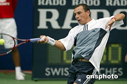 九月十五日,中國網(wǎng)球公開賽ATP男子單打比賽在北京網(wǎng)球中心的中央球場進行,法國選手利斯納德以四比六和五比七不敵有亞洲男子單打網(wǎng)球頭號選手之稱的泰國名將斯里查潘。圖為利斯納德在比賽中。中新社記者:盛佳鵬