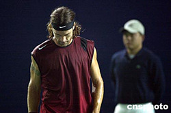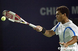 中國網球公開賽男單比賽九月十五日晚在北京網球中心中央球場繼續進行,賽會頭號種子西班牙名將莫亞以零比二不敵法國選手特松加,爆出本屆中國網球公開賽最大冷門,無緣晉級下一輪。中新社記者:盛佳鵬