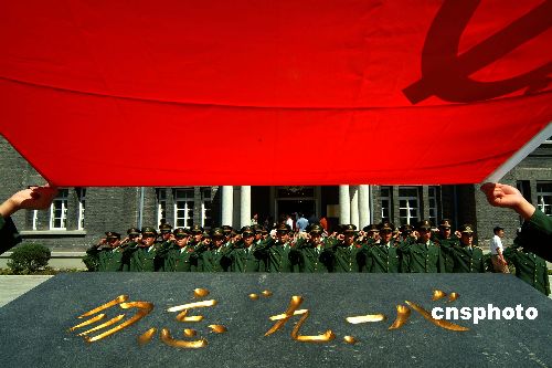 9月16日,武警官兵在長春偽滿皇宮"勿忘九一八"紀念碑前宣誓。當日,武警吉林總隊第一支隊組織廣大官兵來到長春偽滿皇宮九一八紀念館參觀,通過參觀圖片展和實物展了解日本軍國主義在中國所犯下的罪惡行徑,夯實了武警官兵愛國愛本職和爭做黨和人民忠誠衛士的信念。作者:樊甲