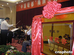 今年九月五日,中國全國人大常委會副委員長司馬義·艾買提在北京人民大會堂把“中國硯都”的牌匾授予了肇慶市。