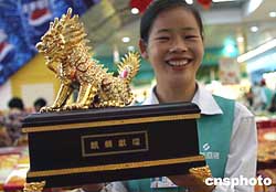 中秋佳節(jié)即將來臨,廣西南寧一商場推出造型優(yōu)美、中國文化味十足的“麒麟”月餅吸引顧客。中新社記者:張勤