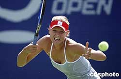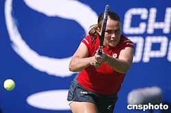 九月二十二日,中國網球公開賽的WTA賽事的女單比賽繼續進行,在北京網球中心中央球場進行的一場引人注目的女單比賽中,三號種子俄羅斯選手莎拉波娃輕松戰勝另一名俄羅斯選手的帕諾娃,順利晉級下一輪比賽。中新社記者:盛佳鵬
