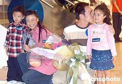 藝員陳豪、廖碧兒9月22日在香港銅鑼灣出席休閑服裝連鎖店bossini旗艦店擔任開幕嘉賓,大會安排兩位小朋友向兩位嘉賓獻花,陳豪親吻送花的小女孩,廖碧兒則笑不攏嘴。作者:鄧慶樂