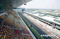 九月二十六日,F1中國大獎賽將在全新的上海國際賽車場舉行決戰。圖為上海國際賽車場筆直開闊的發車直道。作者:潘索菲