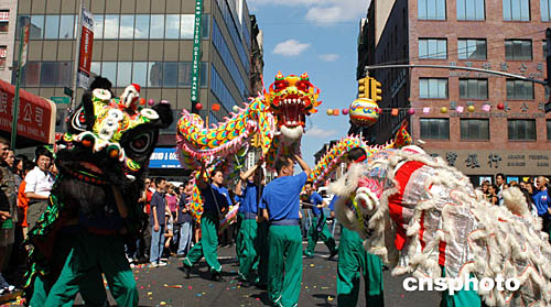 美東時間九月二十六日,紐約秋高氣爽。由“九一一”以后成立的繁榮華埠社主辦的慶中秋文藝燈節舉行,慶祝活動從中午持續到傍晚,華埠鑼鼓鏗鏘,獅龍競舞。作者:龔文謨
