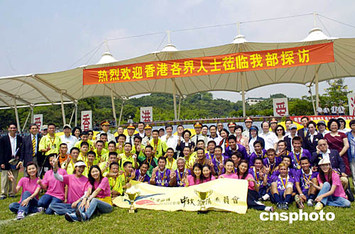 香港特首夫人董趙洪娉率各界人士于9月28日中秋節探訪中國人民解放軍駐港部隊,在昂船洲軍營與駐軍足球隊、香港明星足球隊賽后合影留念。