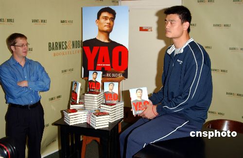 9月28日,中國籃球明星姚明在美國紐約簽售他的自傳《兩個世界的生活》,書中記錄了他在中美兩個國家打球和生活的經歷。作者:Ic/cnsphoto