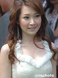 香港歌星關心妍3日出席香港賽馬會在沙田賽馬場舉辦的慶祝中華人民共和國成立五十五周年國慶同歡嘉年華活動。作者:趙振清