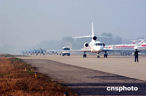 “法蘭西巡邏兵”阿爾法戰機排列北京南苑機場
