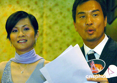 香港藝員黃子雄、饒佩君主持亞洲小姐發布會。