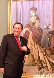 | “法國印象派繪畫珍品展”中外記者招待會十月八日在中國美術館舉行。法國奧賽博物館館長勒穆瓦納先生向媒體介紹克勞德·莫奈的作品《戈迪拜爾夫人》!胺▏∠笈衫L畫珍品展”將于十月十一日至十一月二十七日在中國美術館舉行。本次展覽展出法國精選出的51幅具有代表性的印象派作品,它們均出自法國印象派繪畫史上最重要的十四位畫家之手,這也將是中國舉行的水平最高、最為重要的一次西方繪畫作品展。作為“法國文化年”項目的重頭戲,法國國家收藏品中的印象派珍品將于二零零四年十月起,連續六個月在在中國北京、上海、香港展出。作者:張勤