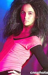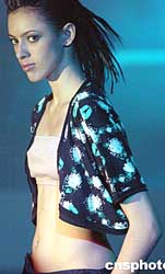 十月八日,香港環球針織布領先制造商福田實業集團,在香港舉行成立三十五周年慶祝會,圖為模特展示由理工大學服裝設計師選用該公司針織布面料設計的新款休閑裝。作者:錢興強