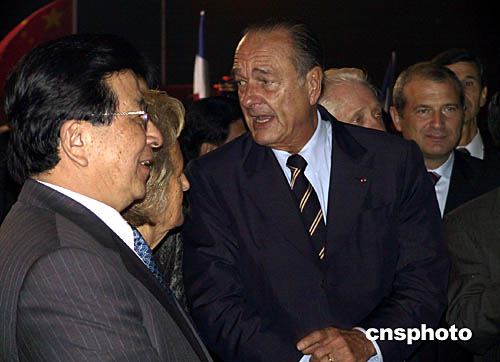 應中國國家主席胡錦濤邀請,希拉克總統(tǒng)來華進行為期五天的國事訪問。隨行的三百多人中,包括法國政要、工商業(yè)界高層人士以及眾多法國媒體。