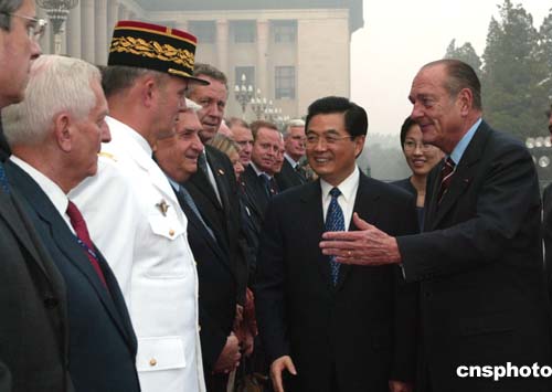 會談前,胡錦濤在人民大會堂東門外廣場舉行儀式,歡迎希拉克到訪。會談后,兩國元首出席了中法兩國有關合作文件的簽字儀式。