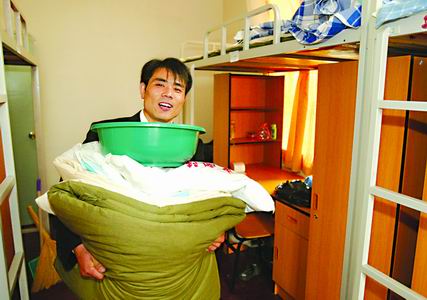 8號是中國社會科學院研究生院新生報到的日子,辦完報到手續,郭榮慶領到了宿舍鑰匙和自己的被褥、生活用品。宿舍里住了六個人,每人有一套書桌椅和柜子,光線很充足。郭榮慶興奮地打量著新住處,說:“比我原來住的偏房可強多了!保ㄍ跚飳崳