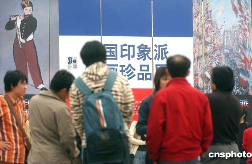 十月十日,“法國印象派珍品展”在北京中國美術館開幕,展品匯集了法國印象派代表人物莫奈、馬奈等大師的五十一幅原作,成為中法文化年中最重要的展事之一。據悉,由于展品屬于法國國家的藏品,保險金額高達五億歐元。