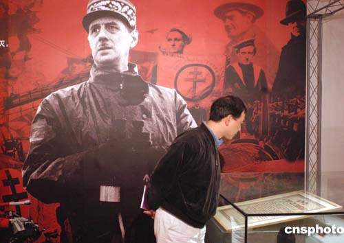 10月10日下午,由中國人民外交學會、中國對外文化交流協會和法國戴高樂基金會聯合主辦的《叱吒風云的偉人——戴高樂生平展》,在北京中華世紀壇開幕。這一活動是法蘭西共和國總統希拉克對中國進行國事訪問之際,正式拉開帷幕的“中法文化年”——法國文化年的活動之一。展覽主要通過圖片、視聽手段復原戴高樂生前的生活和工作場景,展示戴高樂將軍的一生和他為法國所做的貢獻。作者:鄒憲