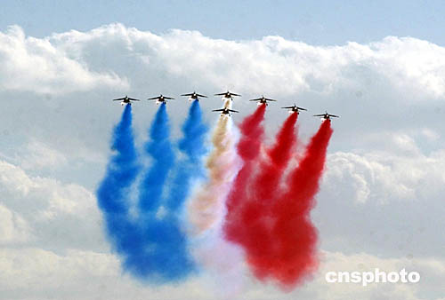 據(jù)中央電視臺(tái)消息,由于天氣的原因,"法蘭西巡邏兵"飛行表演隊(duì)在北京的特技飛行表演一直未能如期進(jìn)行。經(jīng)過(guò)中法雙方有關(guān)部門(mén)的協(xié)調(diào),"法蘭西巡邏兵"飛行表演隊(duì)今天下午將在南苑機(jī)場(chǎng)進(jìn)行正式的飛行表演,屆時(shí)官方電視臺(tái)將對(duì)此現(xiàn)場(chǎng)直播。