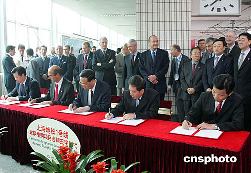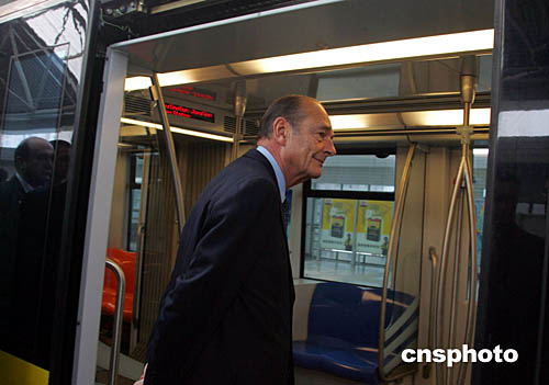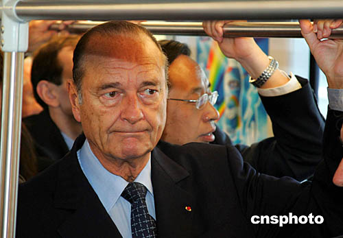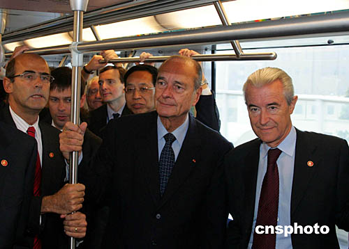 十月十二日,法國總統希拉克參觀、乘坐上海軌道交通三號線,并見證“上海地鐵一號線車輛續購項目合同簽字儀式”。上海申通集團有限公司將購置一百二十八輛中法合作生產的地鐵車輛,二十二個月后這些車輛將陸續投入營運。作者:潘索菲