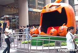 一年一度的萬圣節(jié)將臨,香港時代廣場裝飾一新,各種新裝飾的造型藝術(shù)作品充滿萬圣節(jié)氣氛。作者:錢興強
