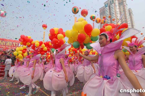 中國(guó)(江門(mén))僑鄉(xiāng)華人嘉年華暨二零零四中國(guó)(江門(mén))僑鄉(xiāng)旅游節(jié),十月十七日在廣東江門(mén)市隆重舉行,來(lái)自海內(nèi)外和五邑各市、區(qū)共四十二支表演隊(duì)和方陣組成的二千多人的龐大表演隊(duì)伍在大街上進(jìn)行了浩浩蕩蕩大巡游。作者:羅仰明