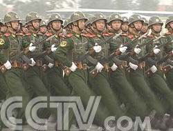 團體操剛剛演練完,他們馬上打散隊形,用倒功組成了“55、盾牌和長城”圖案,向國慶55周年和公安部建部55周年獻禮致敬。