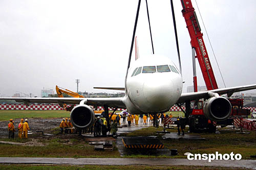 今晨本社記者透過(guò)機(jī)場(chǎng)圍墻看到,工作人員正在開(kāi)動(dòng)吊車吊起事故飛機(jī)。飛機(jī)距離機(jī)場(chǎng)圍墻只有數(shù)十米的距離,在草地中的機(jī)頭已被吊起,改變了飛機(jī)昨晚發(fā)生事故時(shí)尾巴翹起、機(jī)頭朝下的姿態(tài)。但截至發(fā)稿時(shí),此間電視臺(tái)報(bào)道,拖離事故飛機(jī)的進(jìn)程不甚順利。松山機(jī)場(chǎng)最快要到早上九點(diǎn)半才能恢復(fù)運(yùn)營(yíng)。