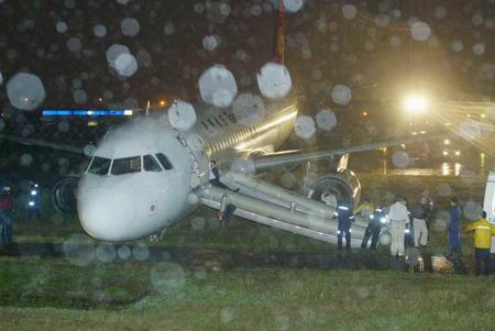 中新社臺(tái)北十月十九日電 (記者 張明新)臺(tái)灣復(fù)興航空一架由臺(tái)南飛往臺(tái)北的飛機(jī)昨天晚上在松山機(jī)場(chǎng)降落時(shí),不慎滑出跑道,到目前為止,機(jī)場(chǎng)還未重開(kāi)。