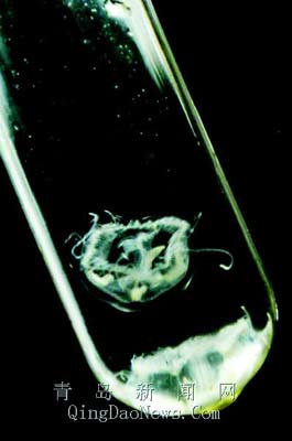 當(dāng)王老師見到學(xué)生們所說的“水母”時,頓時驚呆了。“這就是罕見的‘桃花水母’呀!”他高興地跳了起來。王老師說,他在讀大學(xué)的時候,曾聽教授講述過這種奇特的生物,他立即捕捉了幾只送給中國海洋大學(xué)的專家,經(jīng)過鑒定證實此生物就是桃花水母。
