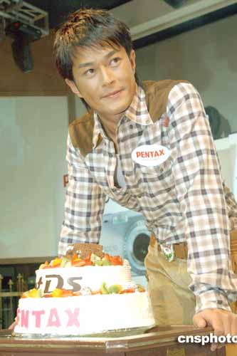 古天樂為賓得數碼相機代言人,是日適逢古天樂生辰,大會送上生日蛋糕為他祝賀。作者:鄧慶樂