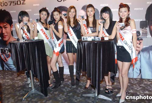 七位賓得數碼女郎向媒體展示七款嶄新型號的數碼相機。作者:鄧慶樂