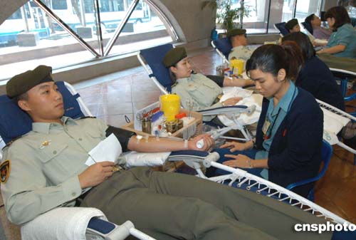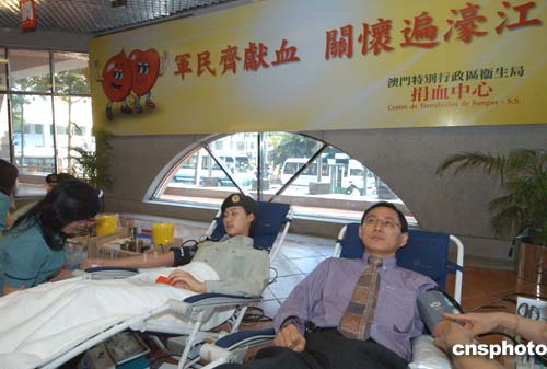 二十八日,澳門舉行“軍民齊獻血關懷遍濠江”活動,一百名解放軍駐澳部隊官兵積極參與了這項有意義的義務獻血活動。作者:梁永強