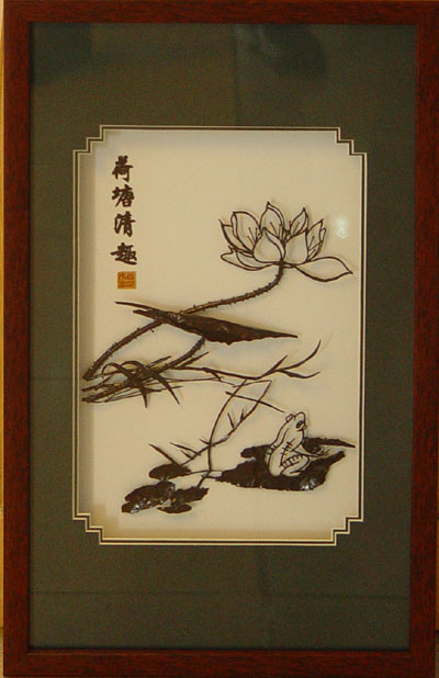 鐵畫是中國工藝美術百花園中一朵獨特的奇葩。它植根于蕪湖,起源于清代康熙年間(1662—1722),距今已有300多年歷史了。創造人是蕪湖鐵匠湯鵬(字天池),傳聞他同畫家肖尺木(字云從)為鄰,“目窺其潑墨勢”,受到啟發,于是以錘代筆,以鐵為墨,以鉆為硯,將筆墨藝術融匯于爐錘焊接之中,一舉創造了鐵畫,賦予頑鐵以藝術的生命。其作品有山水、人物、花鳥、蟲魚、書法等,神態各異,無不入妙。鐵畫一經問世就受到人們的喜愛,不但“遠客多購之”,而且“名噪公卿間”,連皇親貴族也“一笑傾金貲”來購物。文人墨客更是推崇備至,稱贊湯鵬為“鐵冶神工”,可以“百煉化為繞指柔”,“直教六法為洪爐”。清代詩人康發祥在他的詩中說:“誰將鑌鐵作畫本,奇巧獨有蕪湖人。九州之鐵不鑄錯,居然觸手能成春。是畫是鐵技微至,惟妙惟肖形逼真。”`