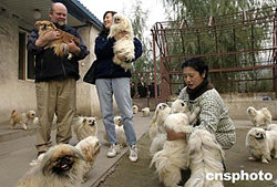 國際愛護動物基金會總裁弗雷德·奧雷根(左)十月末來到北京昌平,參觀這里的北京人與動物環保科普中心。該中心由張呂萍女士(右)創立,是中國唯一一家政府批準的民間動物收容、保護機構,也是國際愛護動物基金會在中國的資助項目之一。目前該中心已收容、救治遭遺棄或虐待的貓、狗等動物一千多只。作者:張煒