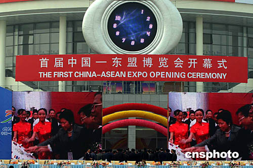 十一月三日,首屆中國-東盟博覽會在廣西南寧開幕,來自中國及東盟十國的政要及二萬一千名賓客將參加這一盛會。作者:蔣雪林