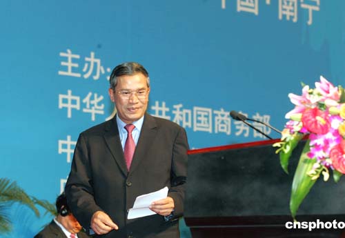 十一月三日,以“促進互利合作,謀求共同發展”為主題的首屆中國—東盟商務與投資峰會在廣西南寧開幕,中國國務院副總理吳儀、柬埔寨首相洪森、老撾總理本揚·沃拉吉、緬甸總理梭溫、泰國副總理披尼·差魯頌巴、越南副總理范學謙等出席峰會開幕式并就本國政策、區域發展等問題做主題演講。圖為柬埔寨首相洪森出席中國—東盟商務與投資峰會。作者:武仲林
