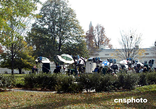 熬了通宵等待大選結果的白宮記者剛剛躺下休息,民主黨候選人克里11月3日中午突然主動認輸,讓這些記者再度忙碌起來,在白宮大院內等待布什政府的反應。作者:余東暉