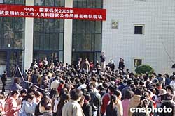 11月5日,已在網上報名參加2005年國家公務員考試的考生在北京農業展覽館3號館進行報名確認,現場人山人海,但井然有序。作者:張蕾