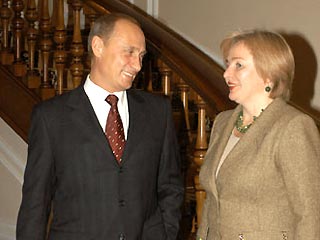 普京在挑選未來的夫人最后與護士柳德米拉-什克列布涅娃(第一夫人作姑娘時的姓名)結婚時,可能考慮到了她對經常變動生活地點、出差在外的接受情況。盡管柳德米拉比丈夫幸運得多,并不經常外出,但還是陪伴總統出訪了許多國家,就在最近半年內,她到過法國、墨西哥、美國和中國。另外,她還經常單獨出國訪問,特別是到德法兩國。不過,她早已適應了這種生活。2002年12月至2003年12月期間,第一夫人至少出訪了13個國家,平均不到每月一次,分別訪問了中國、印度、法國、德國、保加利亞、亞美尼亞、芬蘭、瑞典、英國、蘇格蘭、阿塞拜疆、泰國和意大利。