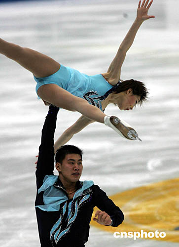 中新社北京十一月十二日電 (記者 王歡)被稱為“世界上最美的運動”的花樣滑冰比賽令人賞心悅目之余也充滿硝煙。進入第二天爭奪的“中國杯”世界花樣滑冰大獎賽,今天產生了首枚金牌。中國黃金組合申雪、趙宏博第一次在家鄉表演新編排的《宋氏王朝》就一舉奪魁,其隊友張丹、張昊也出色發揮獲得銀牌。
