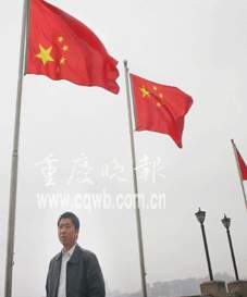 中新網11月14日電 重慶晚報報道,重慶朝天門廣場一國旗倒掛44天,一名六七歲男孩“國旗掛倒了——”的呼喊,結束該面國旗的倒掛“生涯”。