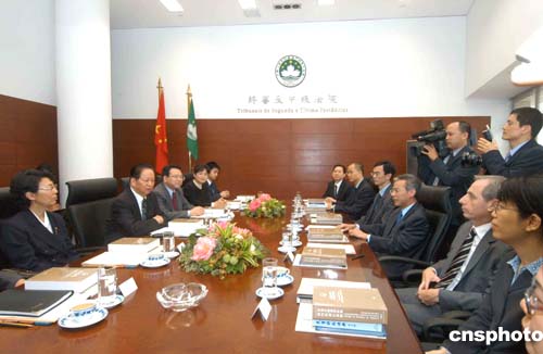 中新網11月15日電 據央視國際網站消息,由最高人民法院院長肖揚率領的最高人民法院代表團今天在澳門與澳門特別行政區終審法院院長岑浩輝進行座談,詳細了解澳門回歸5年來,在“一國兩制”框架下的法律和司法制度等問題。