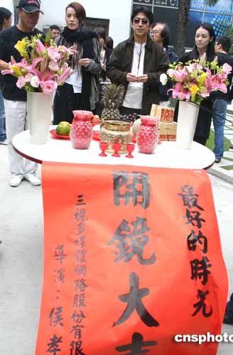十一月十七日,由臺灣著名導演侯孝賢執導的電影《最好的時光》在臺北開鏡。圖為著名影星舒淇(左二)在開鏡前上香。作者:董會峰