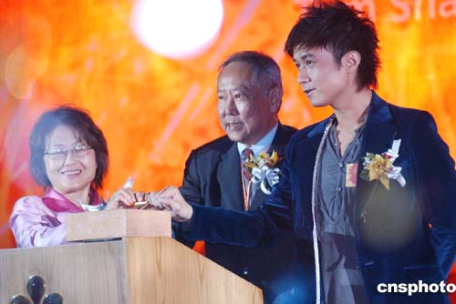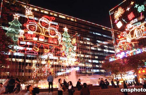 由香港東尖沙咀地產發展商聯會主辦的“金光璀璨耀尖東2004”亮燈儀式,11月19日在市政局百周年紀念公園舉行,九廣鐵路公司事務總經理林黃碧霞、尖東地產發展商聯會會長呂志和博士聯同影視紅星古巨基蒞臨主禮儀式。作者:洪少葵