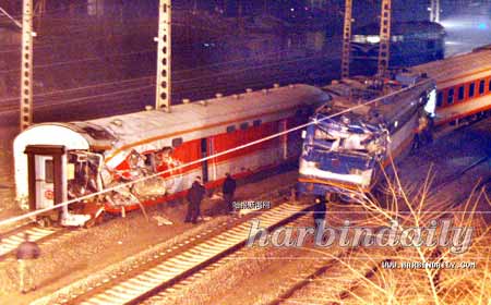 昨日22時30分許,哈爾濱市鄉政跨線橋下一列由佳木斯開往北京的K340次旅客列車與一輛火車頭相撞,事故造成至少3人受傷。目前傷者正在二一一醫院搶救,其余旅客被安全疏散。事故造成該段鐵路暫時中斷。