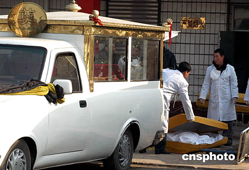 圖:包頭空難遇難者遣體等待親屬辨認安葬