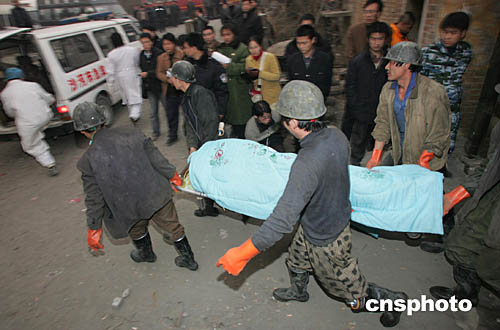 中新社沙河十一月二十三日電(記者孫宇挺)今天下午四點(diǎn)四十分,一陣尖銳的信號鈴聲后,裝載著四具礦工遺體的罐車從金鼎礦業(yè)有限公司西郝莊鐵礦副井口拉出,至此,河北沙河市“一一·二0”礦難事故死亡人數(shù)上升至六十一人,礦難事故指揮部目前核實的一百一十六名被困人員中,已經(jīng)有一百一十二人升井,其中五十一人獲救,仍有四人下落不明。