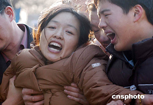圖:包頭空難遇難者遣體等待親屬辨認安葬