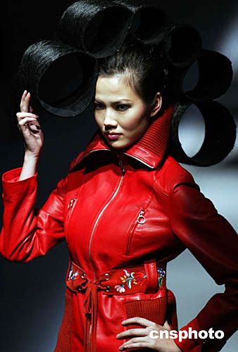 十一月二十三日,在中國(guó)國(guó)際時(shí)裝周會(huì)場(chǎng)北京飯店內(nèi),一場(chǎng)時(shí)裝發(fā)布會(huì)通過(guò)一組構(gòu)思奇特的模特造型將服裝設(shè)計(jì)師的時(shí)裝設(shè)計(jì)作品演繹得淋漓盡致,也更添模特嬌媚。中新社記者:盛佳鵬