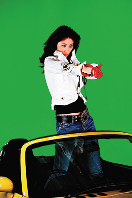 日前Kelly為“亞洲游戲展2004”拍攝《情人戰(zhàn)》MV及電視廣告,Kelly扮演一個(gè)廢墟之中的車神,化身超時(shí)空戰(zhàn)士拯救世界。拍攝時(shí)她一身白色冷艷女車神造型,站在Copen開篷跑車中,為營造賽車的情形,導(dǎo)演用一把大風(fēng)扇,對(duì)著她吹了一小時(shí),令她不停叫冷。